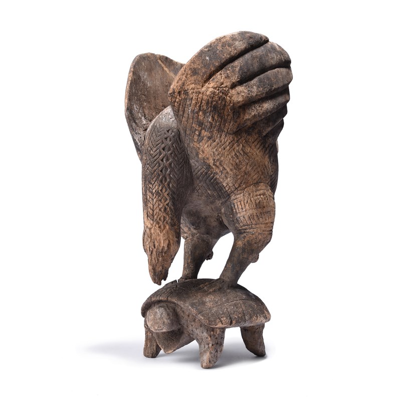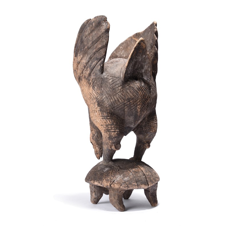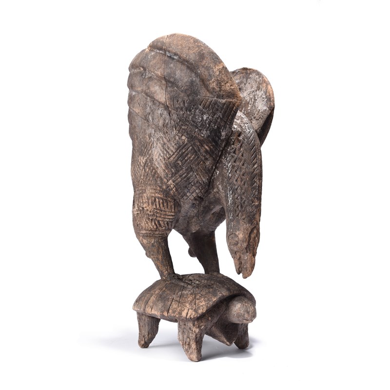 carved a tortoise with an eagle on it's shell, with remains of pigment,