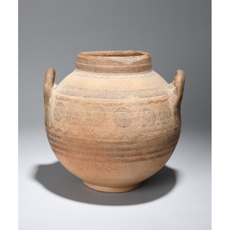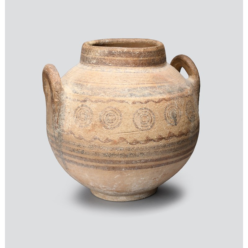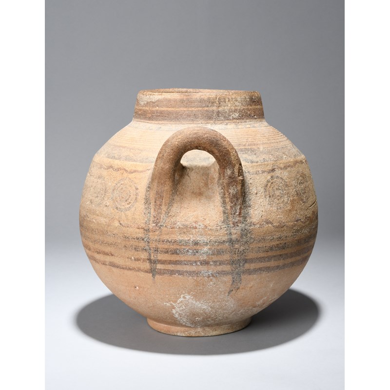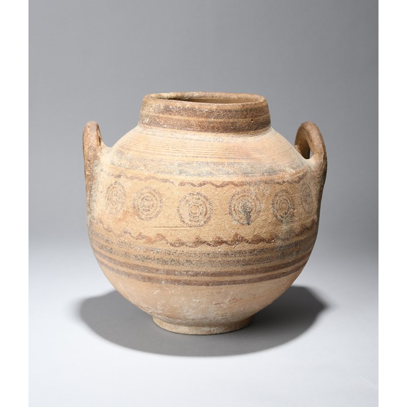 A Cypriot bichrome ware storage jar circa 750 - 600 BC decorated in red and black with a band of...