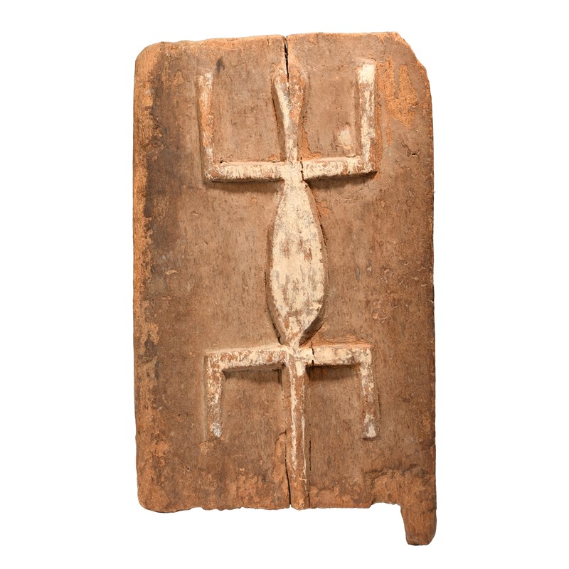 A Dogon granary door Mali with a relief carved lizard