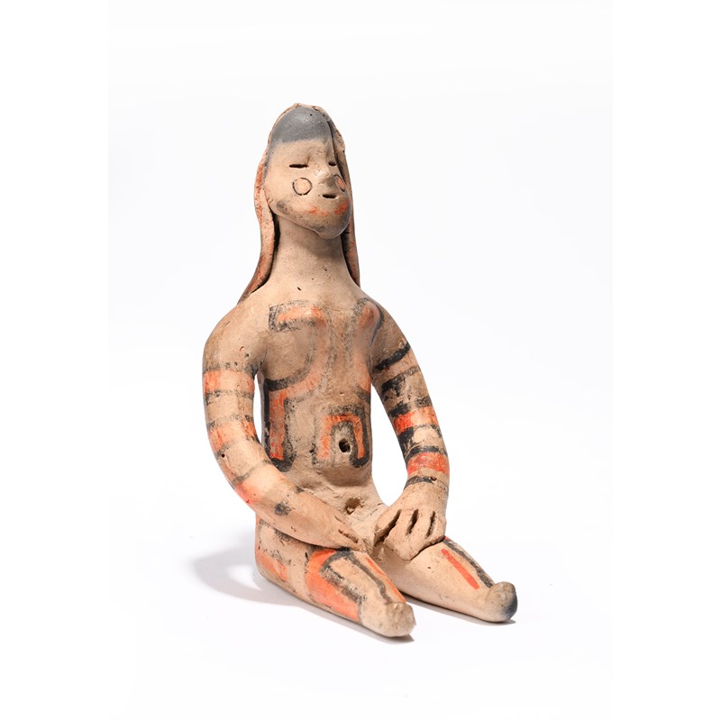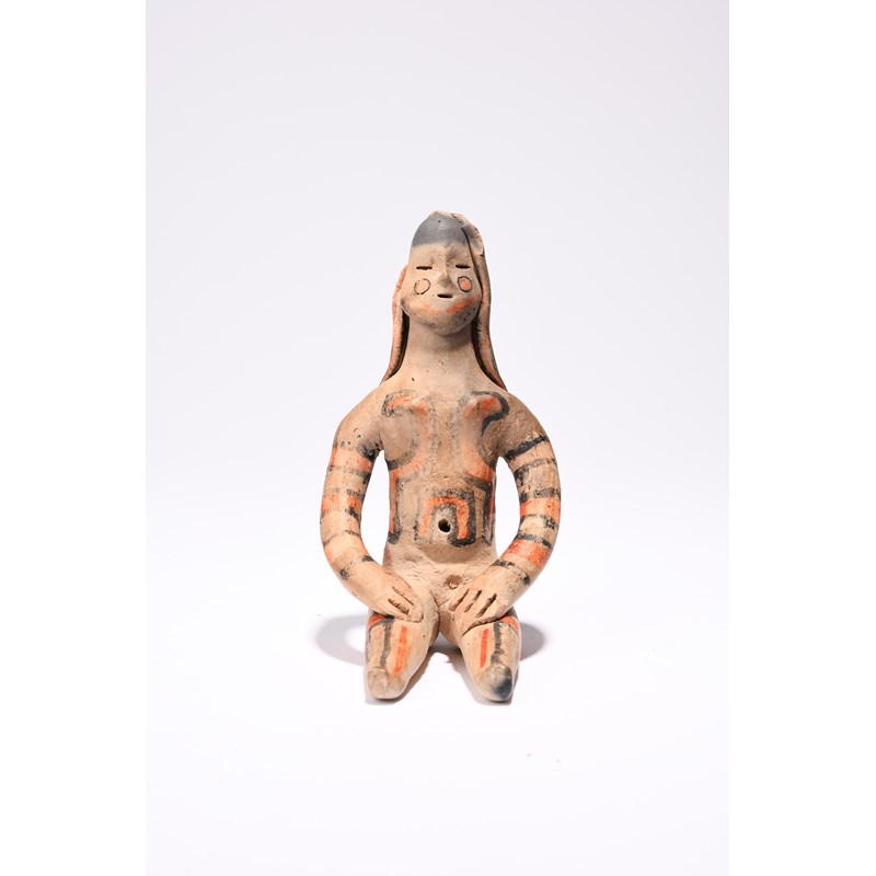 An Amazonian seated female figure Brazil earthenware with red and black decoration
