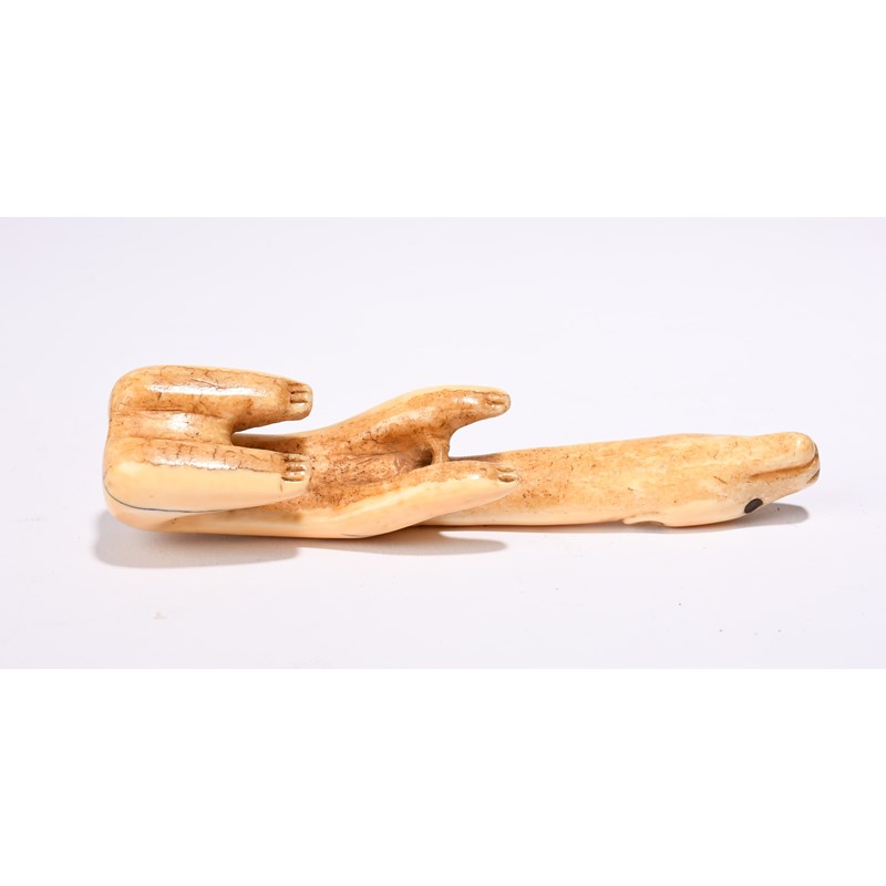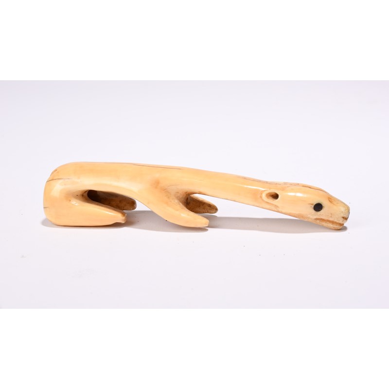 λAn Inuit polar bear amulet Alaska walrus ivory with inset baleen eyes and nostrils
