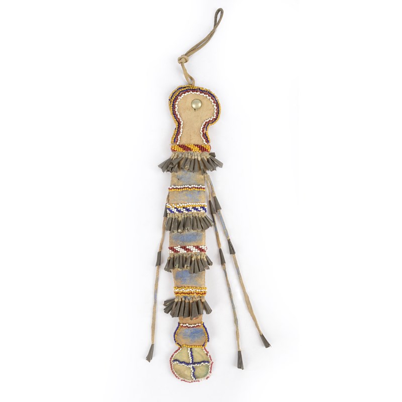 An Apache awl case Southwest hide with coloured glass beads