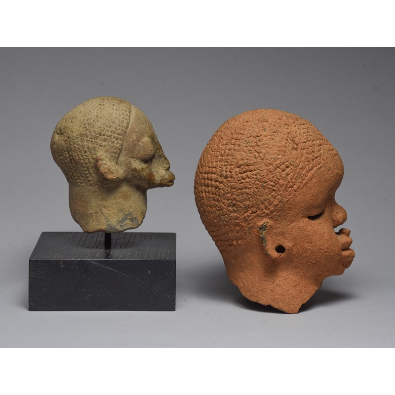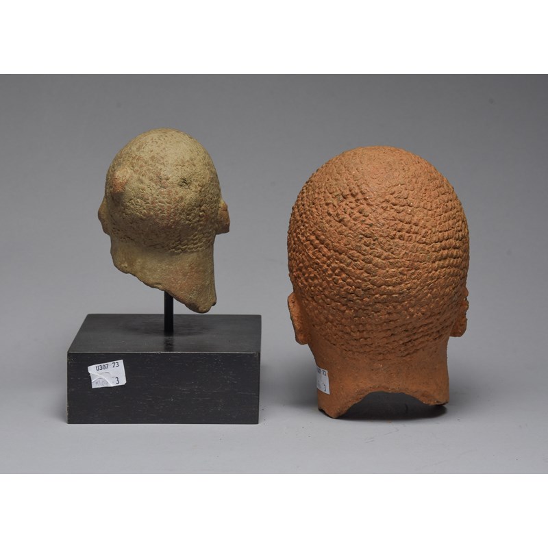 terracotta, with a diced coiffure and the remains of an attachment to the back and with protruding lips,