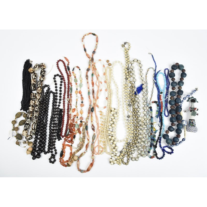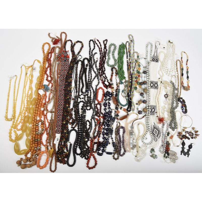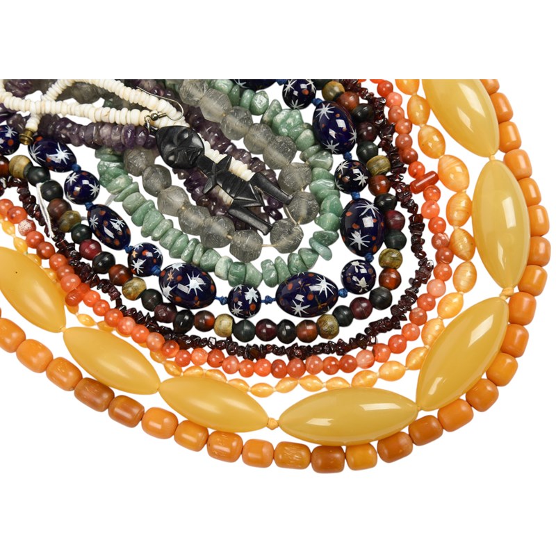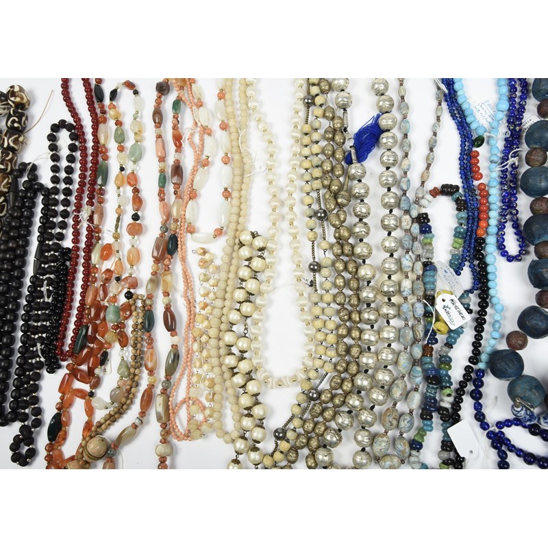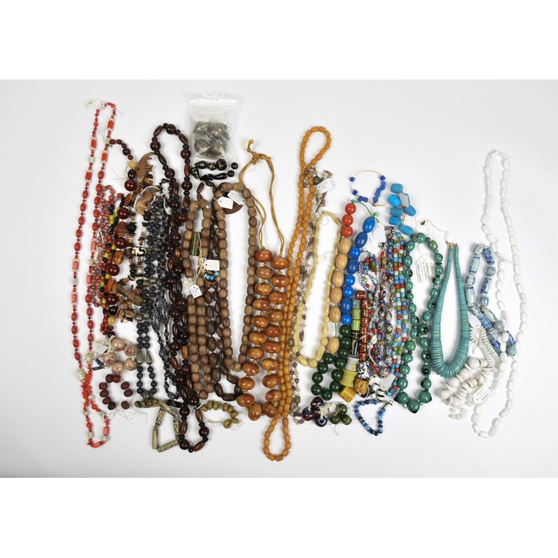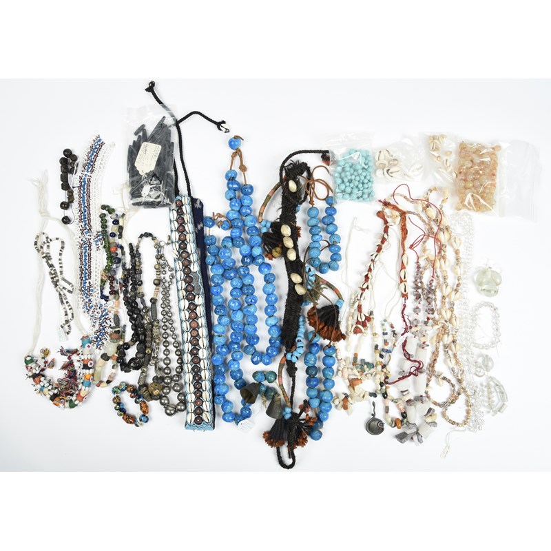 glass, wood, ceramic and shell, with loose bone and silver coloured metal beads. (qty)