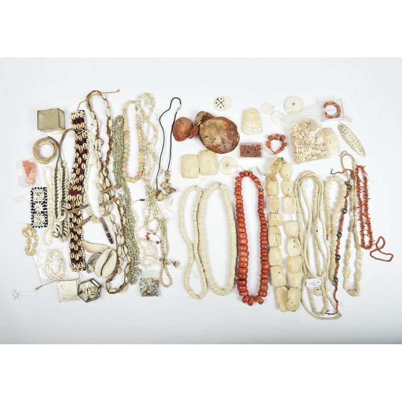 A collection of shell necklaces and ornaments