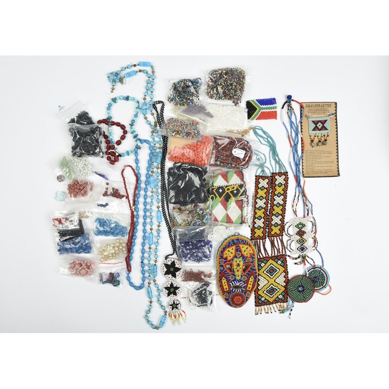 glass and stone, and loose beads and a Zulu love letter and waistband. (qty)