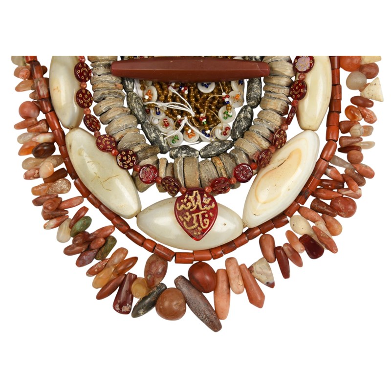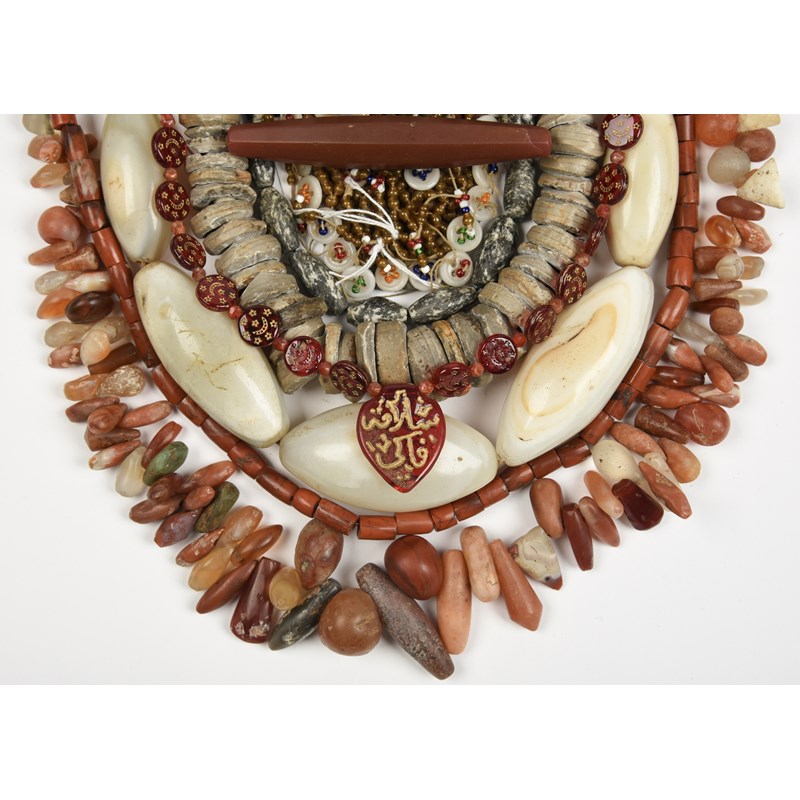 and three Mali stone bracelets, the largest 12cm diameter, and various trade bead necklaces and beads, including an Indian bead and button ornament. (qty)