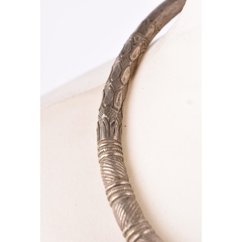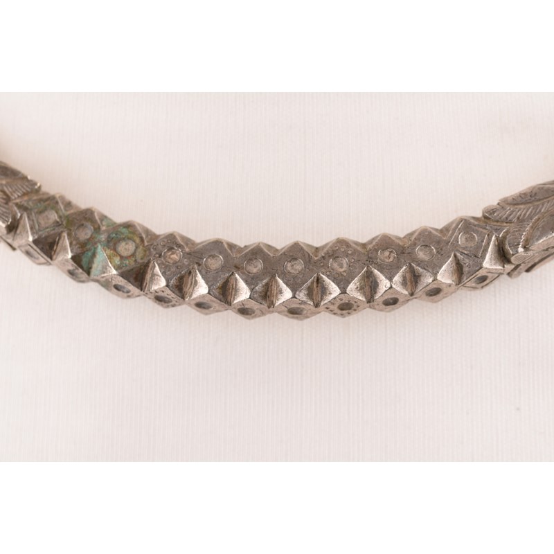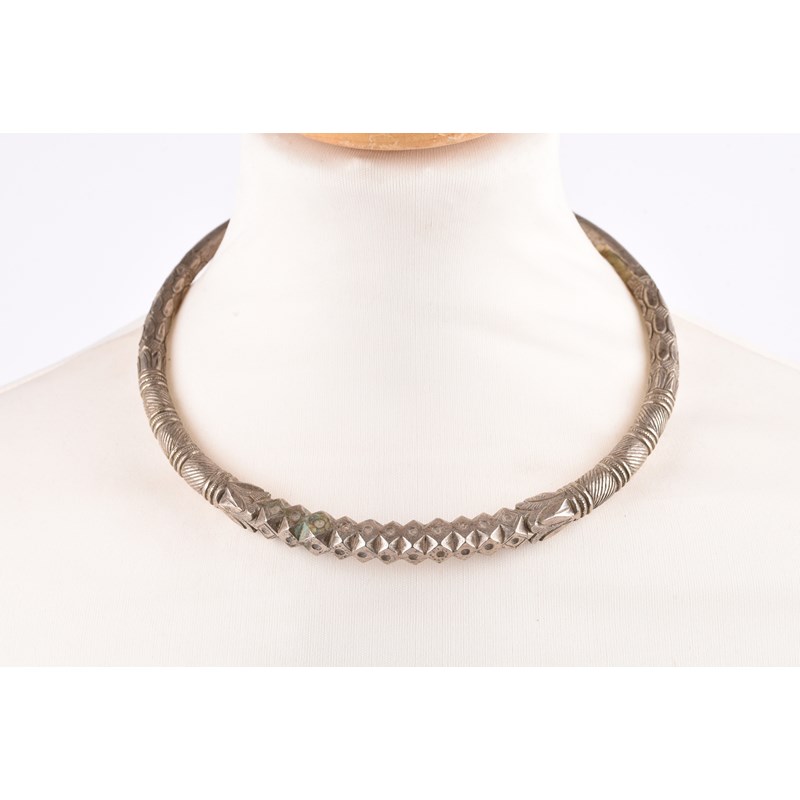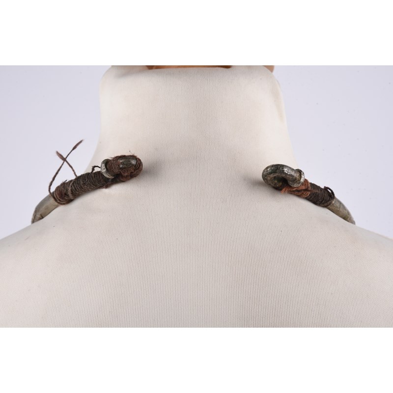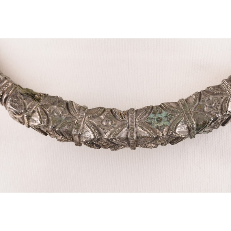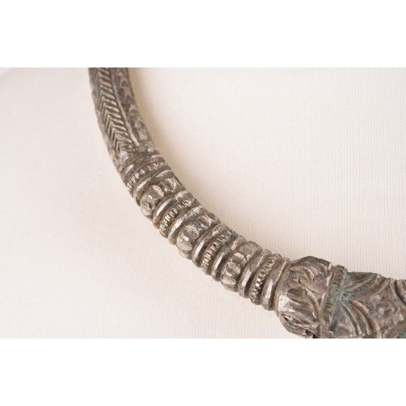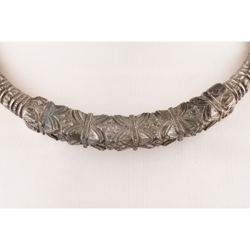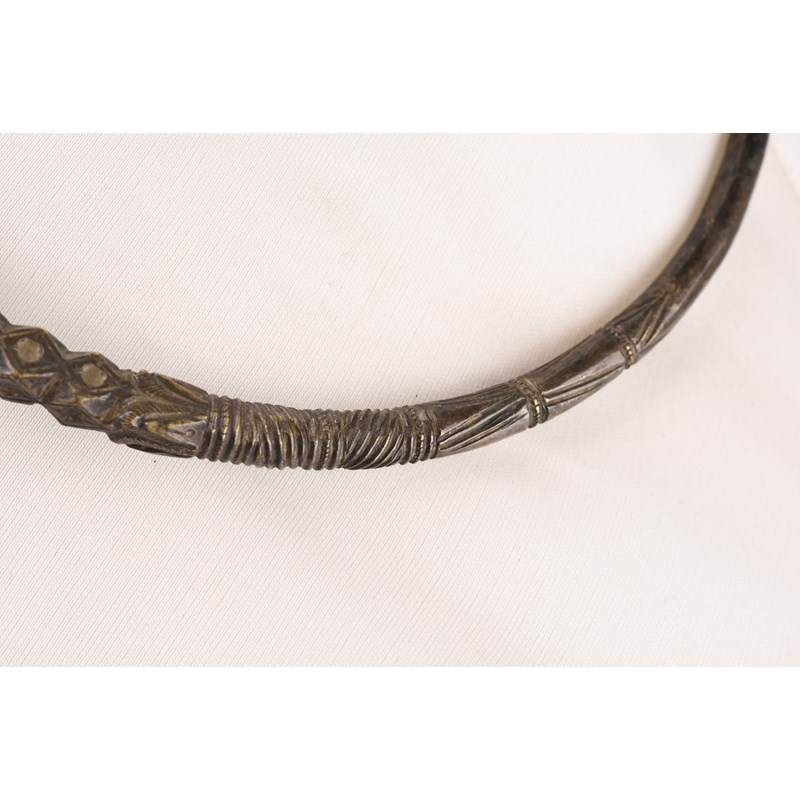 cast base metal and bronze with chiselled decoration, one with fibre binding,