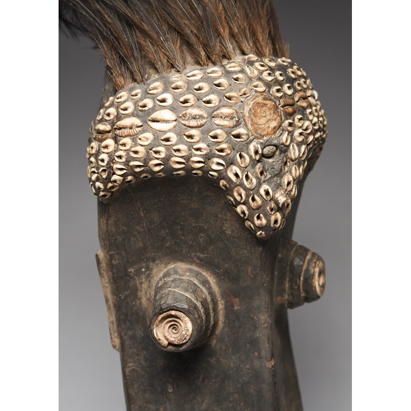 with applied clay, shells, fibre, cassowary feathers and tusks,