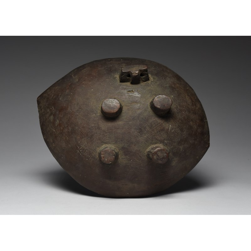 of elliptical form, raised on four faceted feet with a ribbed lug pierced for attachment,