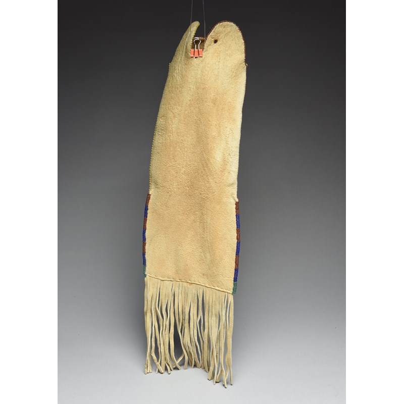 coloured glass beads, cotton and buckskin,