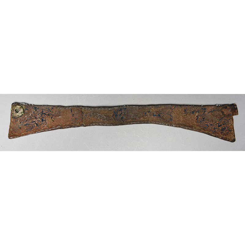 leather and coloured glass beads with floral designs,