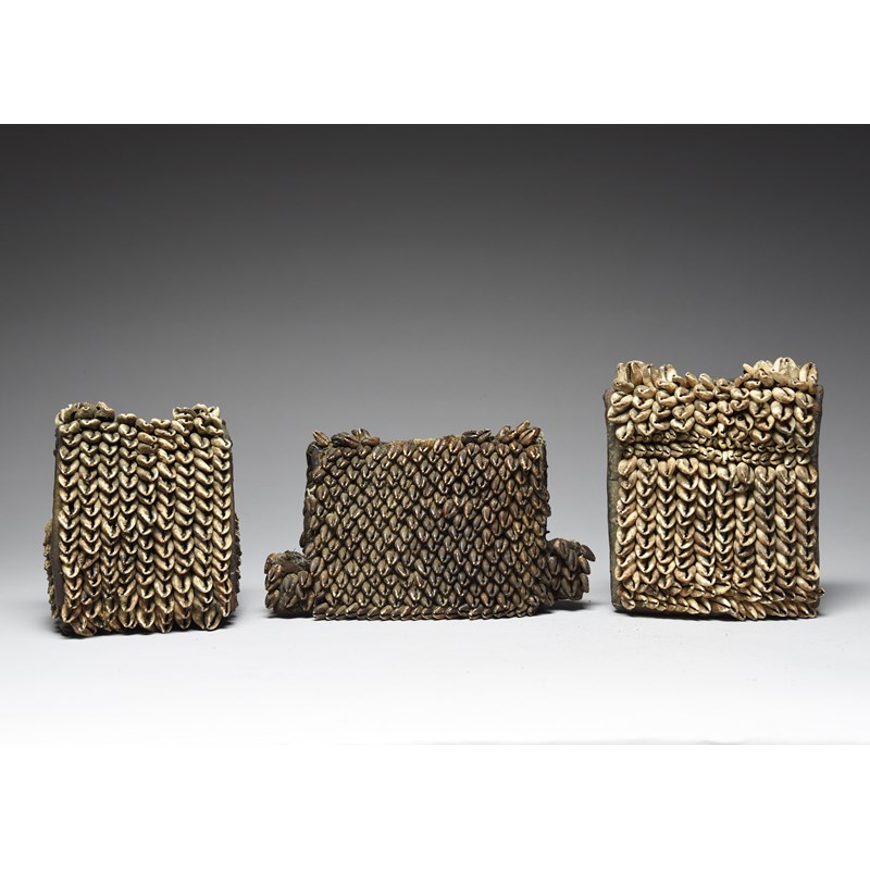 canvas, cloth, leather and cowrie shells,