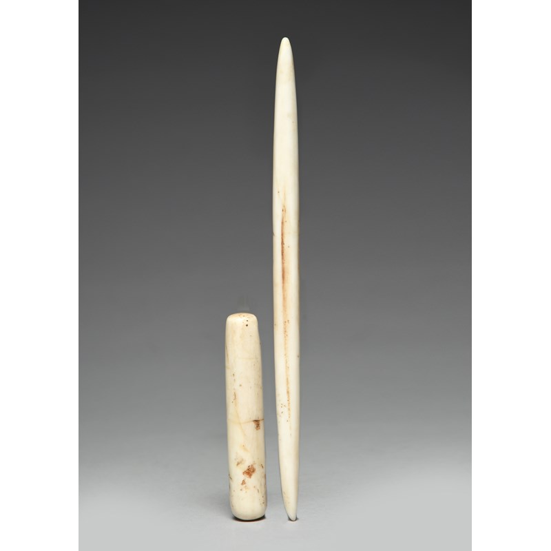 and a Papua New Guinea clam shell ear ornament, 8.1cm long. (2)
