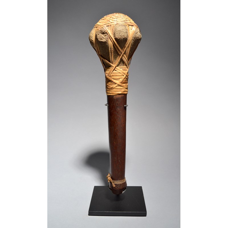 According to Kaeppler "This rare club has a finely shaped stone head. Most known examples are entirely made of wood. Only four other stone-head examples are known. These are in the Otago Museum, Dunedin, N.Z.; British Museum, London; Cambridge Museum of Archeology and Anthropology, U.K.; and Brisbane Museum, Australia."