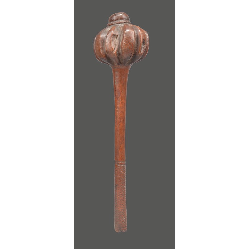 A Fiji throwing club i ula tavatava Melanesia with a ribbed head and a carved zig-zag grip