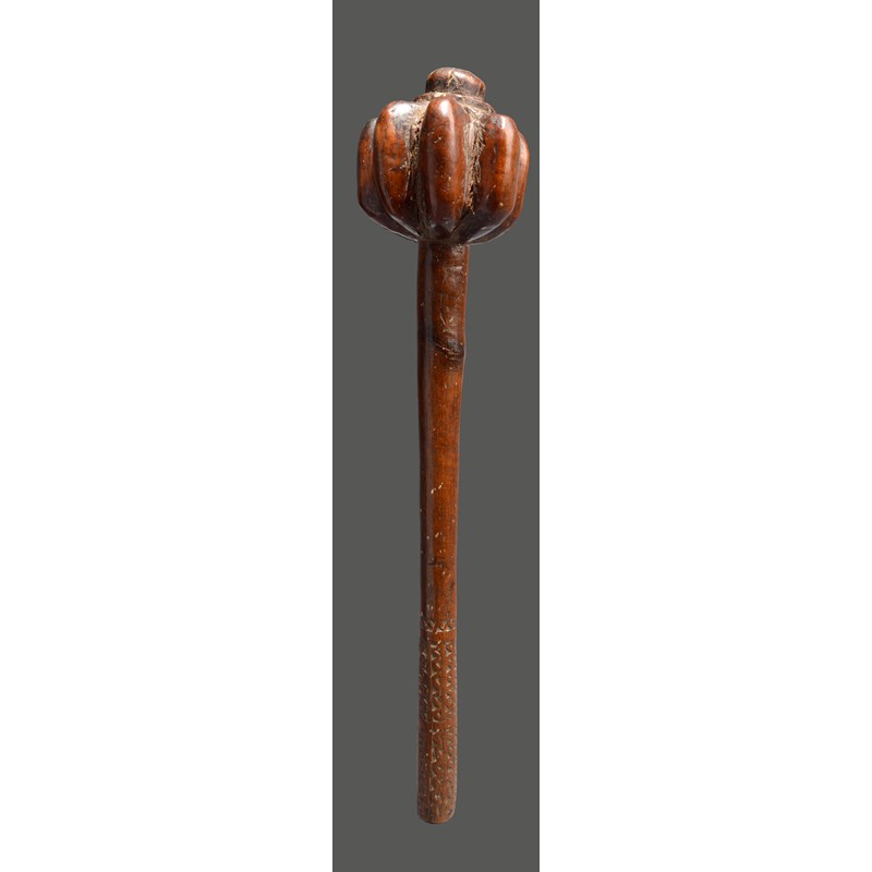 with a ribbed head and a carved zig-zag grip, the top of the shaft with a series of incised dots,
