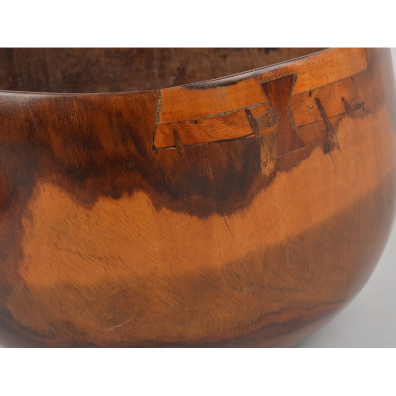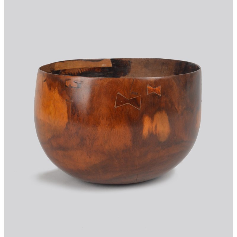 A Hawaii bowl Polynesia of deep form with seven butterfly and six patch repairs