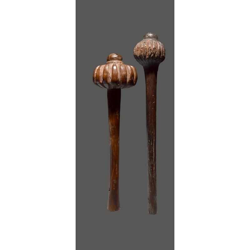 Two Fiji throwing clubs i ula tavatava Melanesia with ribbed heads
