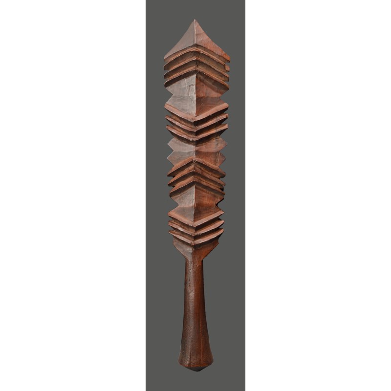 A Samoa short club Polynesia with a chevron ribbed blade and a tapering handle