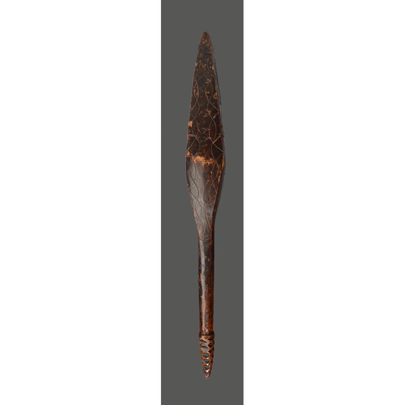 An Aboriginal club Australia with a lozenge shape head having incised linear decoration and...