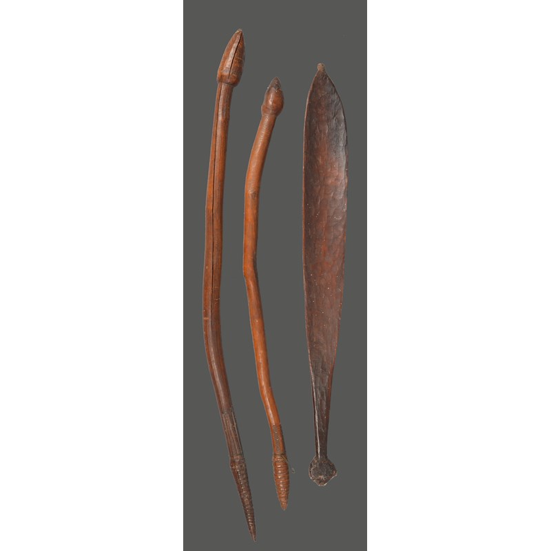 and an Aboriginal spear thrower woomera, 67.5cm long. (3)