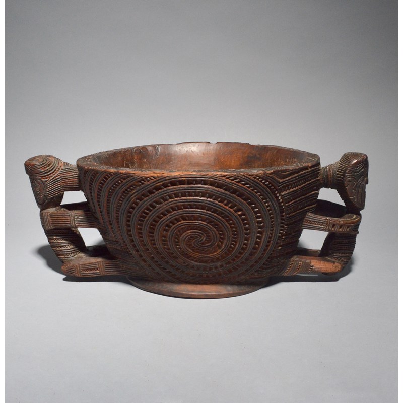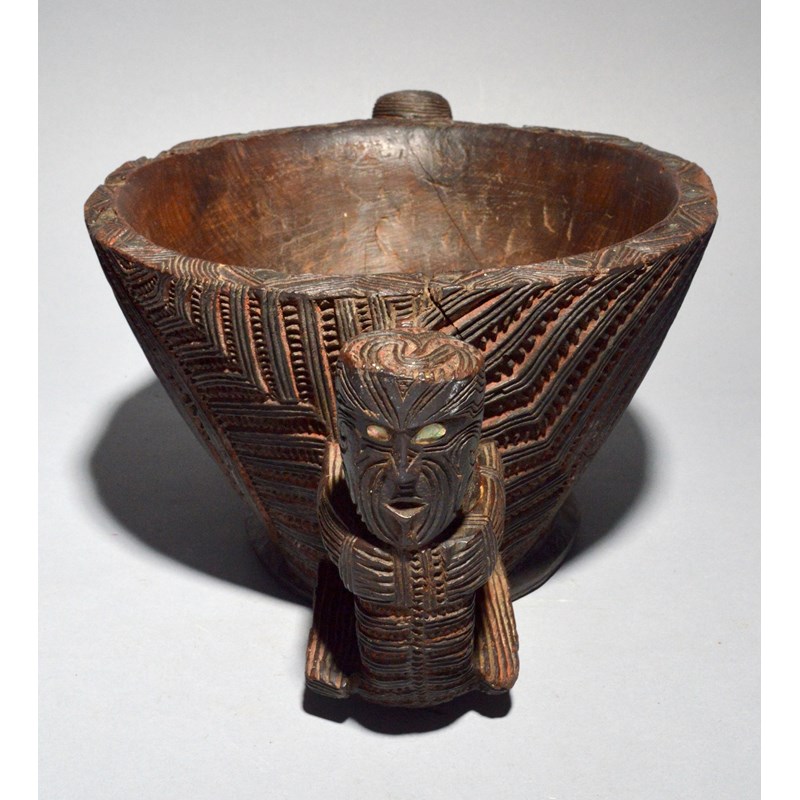 A Maori bowl New Zealand with all-over carved linear and notched decoration