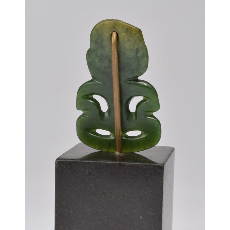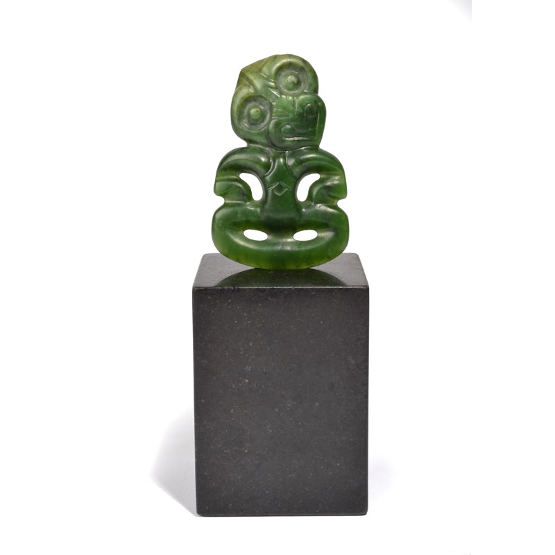 A Maori hei-tiki pendant New Zealand nephrite with the arms on the hips and a suspension hole to...