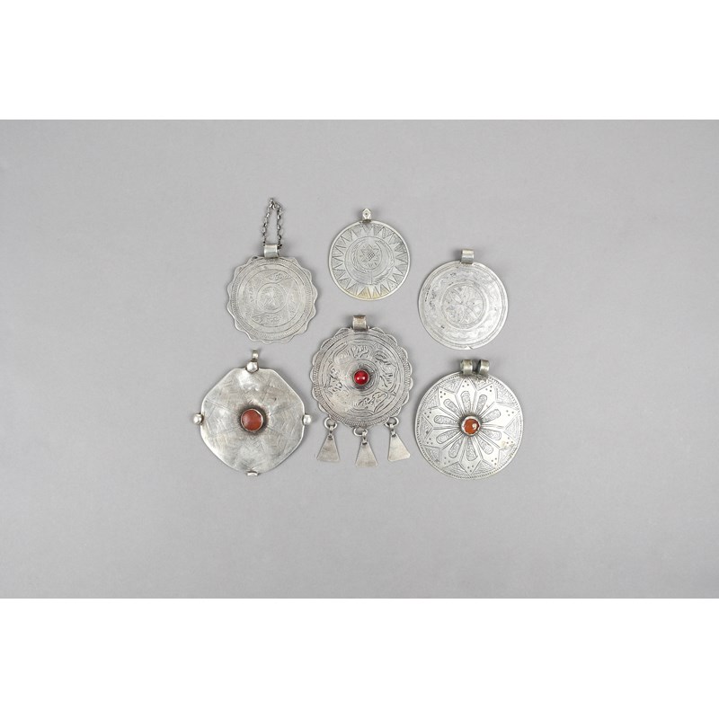 Six Nubian hafayiz pendants silver coloured metal
