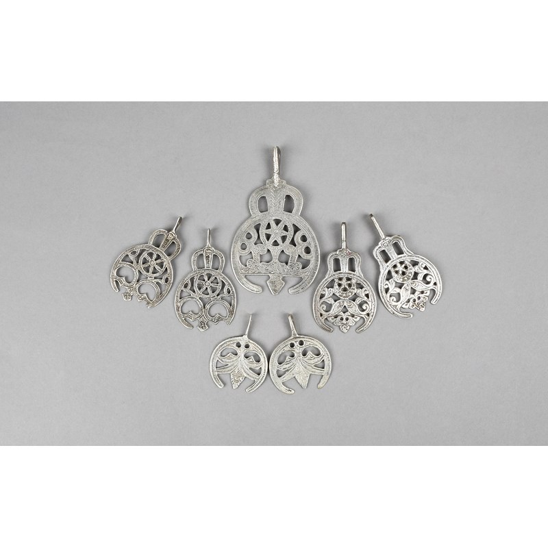and three pairs of hilal pendants; Egypt, Liberia and one matched. (7)