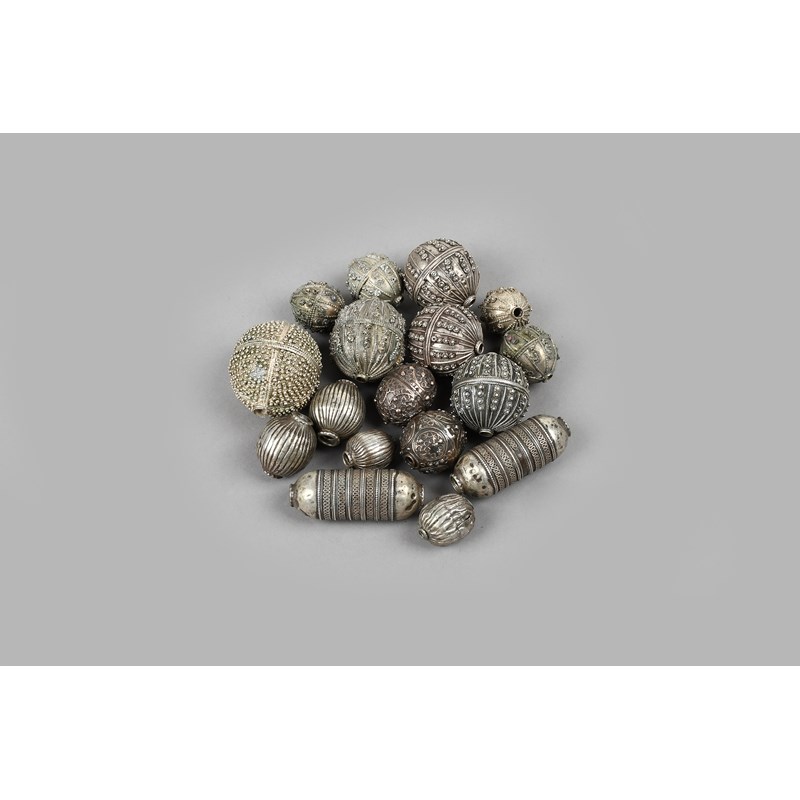 Four Yemen signed large beads silver coloured metal