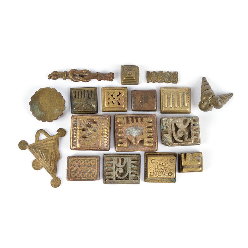Seventeen Ashanti gold weights Ghana brass