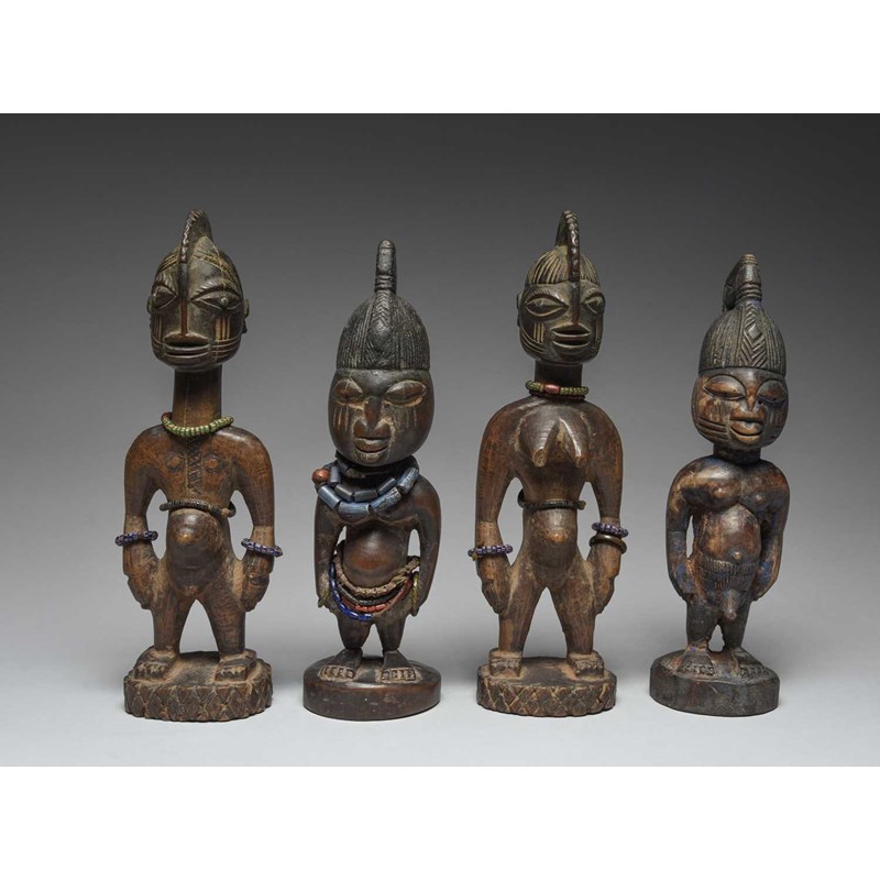 and a matched pair of Yoruba Ibeji male figures, 25cm high. (4)