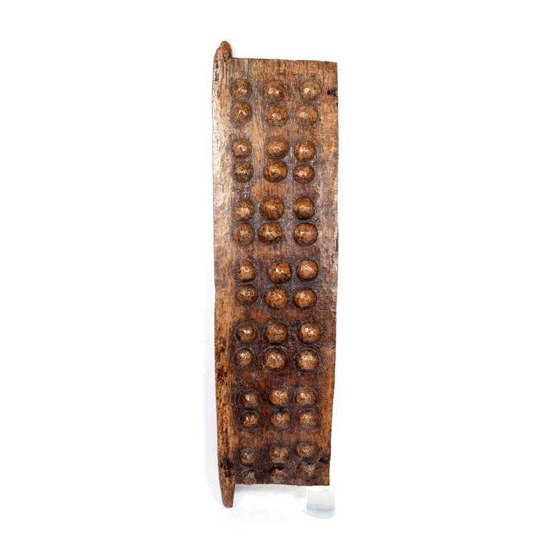 A Dogon door, carved forty-two bosses, 157.5cm high.