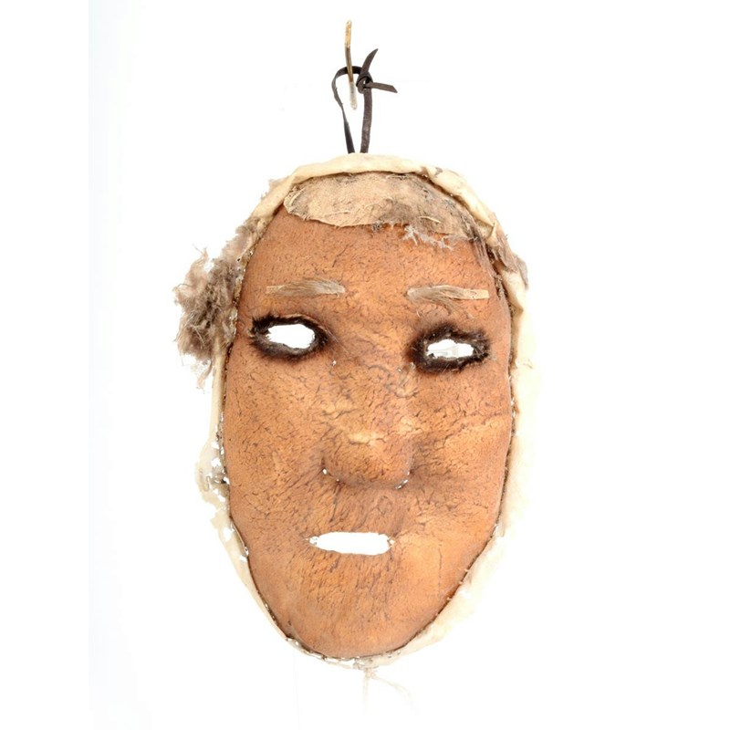 An Inuit Caribou mask, with fur, 17.5cm high.