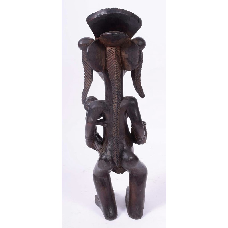 A Luba standing maternity figure, with child and bowl, 54.5cm high.