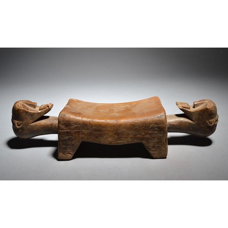 A Songye headrest Democratic Republic of Congo with carved mask end lifts