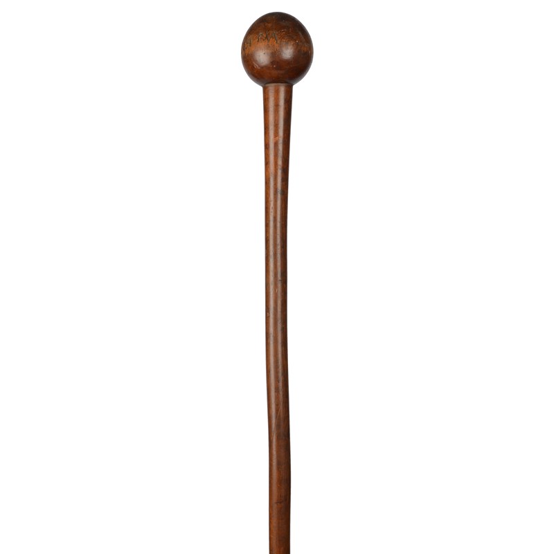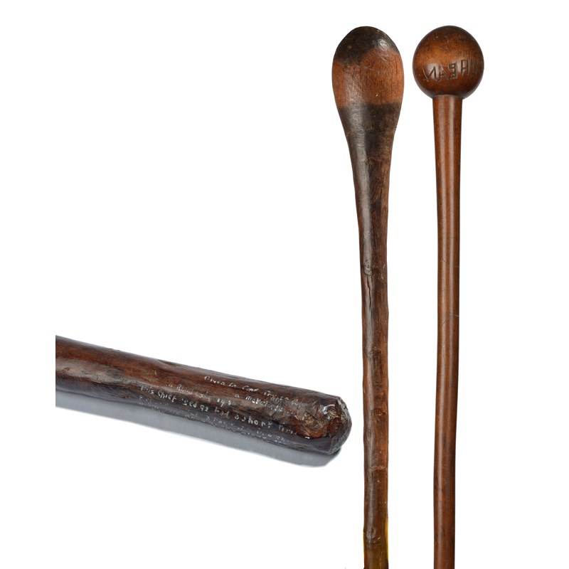 and a Zulu knobkerrie, the spherical head engraved a name, 73.5cm, long. (2)