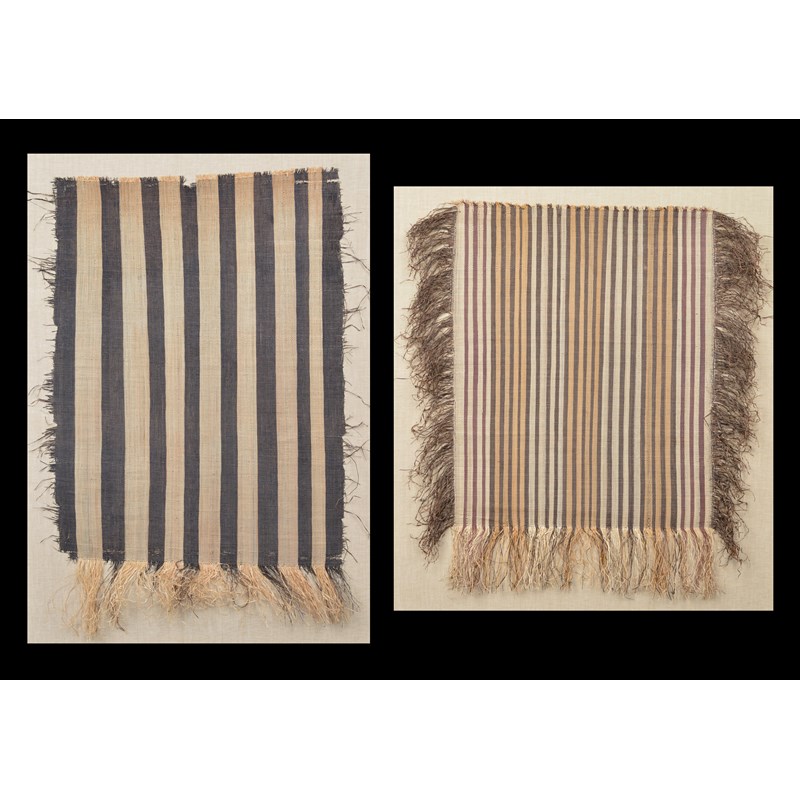 Two Teke raffia cloths Democratic Republic of Congo with stripes in natural or dyed