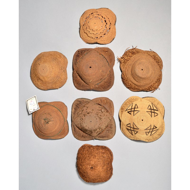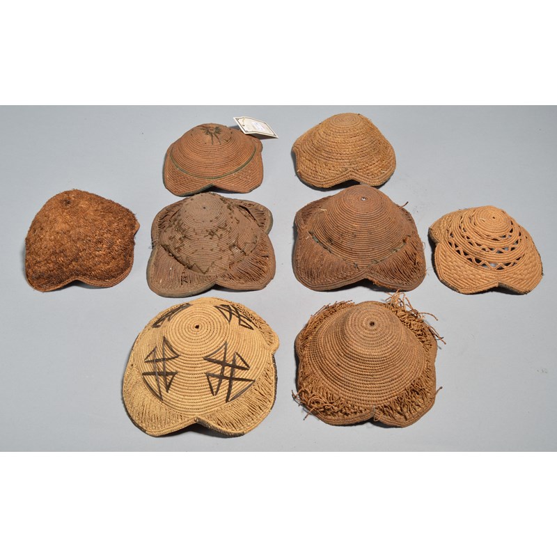 Eight Kuba laket caps Democratic Republic of Congo fibre with differing finishes