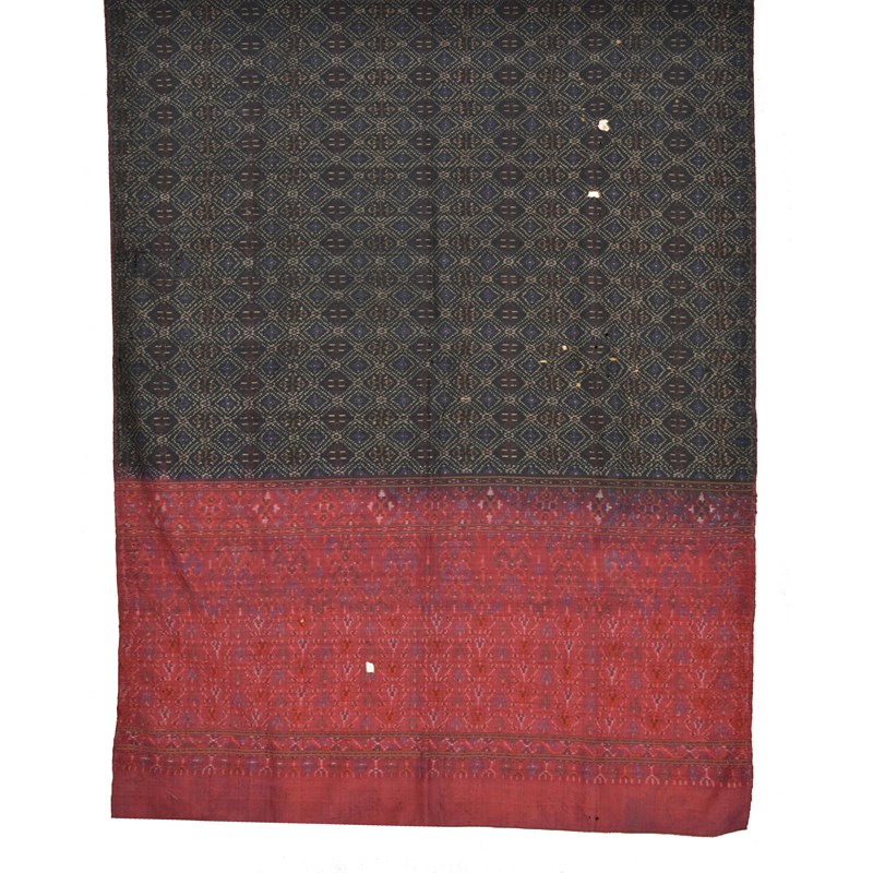 another cloth with metal thread and three Indonesian ikat cloths. (5)