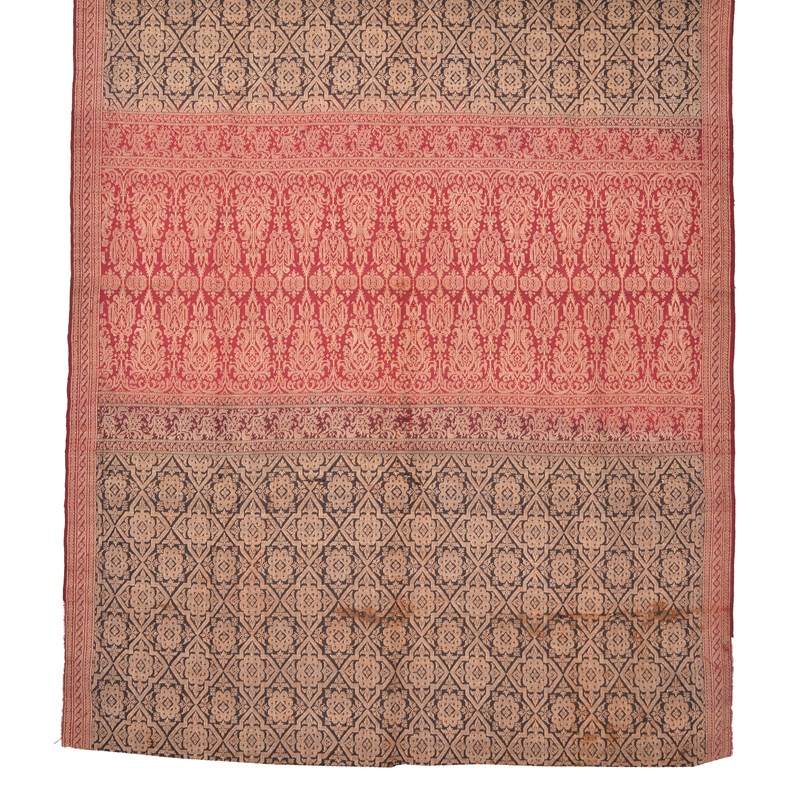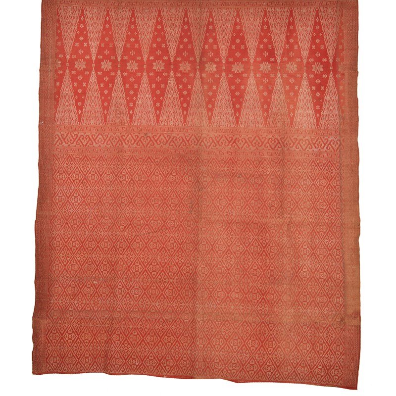 A Malay songket Indonesia red silk with silver thread 194cm x 102cm
