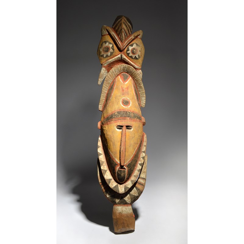 An Abelam head Papua New Guinea with a double hornbill headdress and with pigment decoration