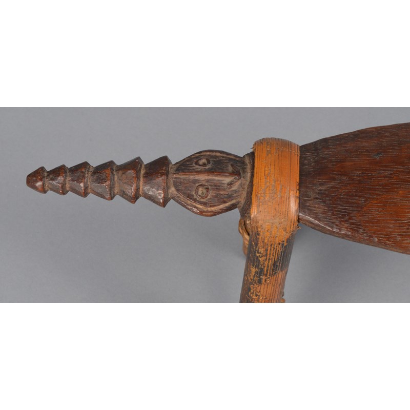 A Sepik headrest Papua New Guinea with carved ancestor head ends with tiered headdresses and a...