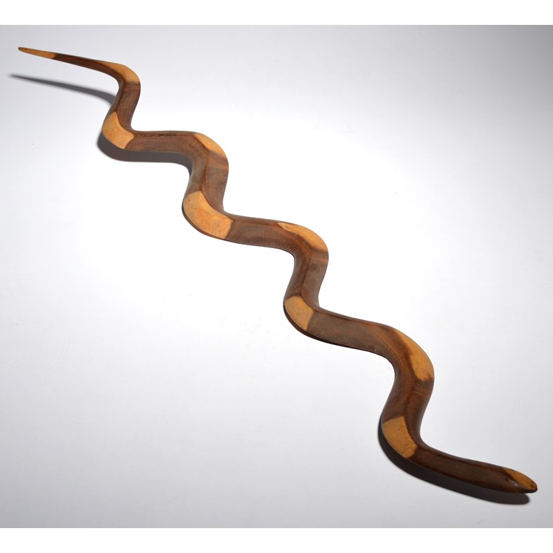 a carved bamboo stylised bird, an earthenware bowl, inscribed No.5, TAFT, and an Aboriginal snake. (4)