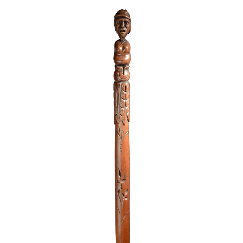 with a carved zig-zag handle and later sailor carved shaft and end with a figure,