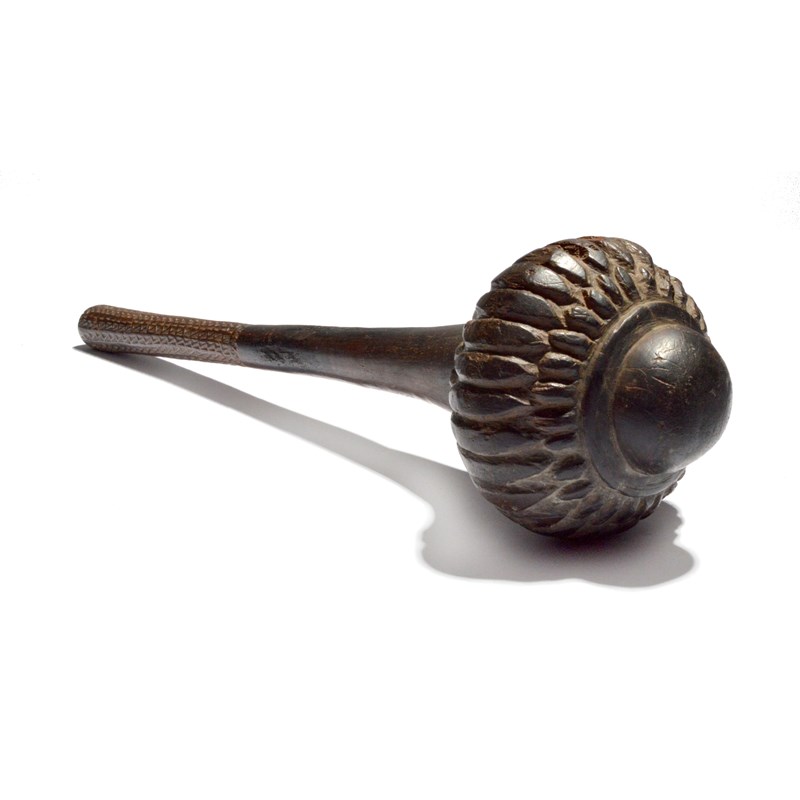 A Fiji throwing club i ula tavatava Melanesia with a ribbed head and a carved zig-zag grip with a...