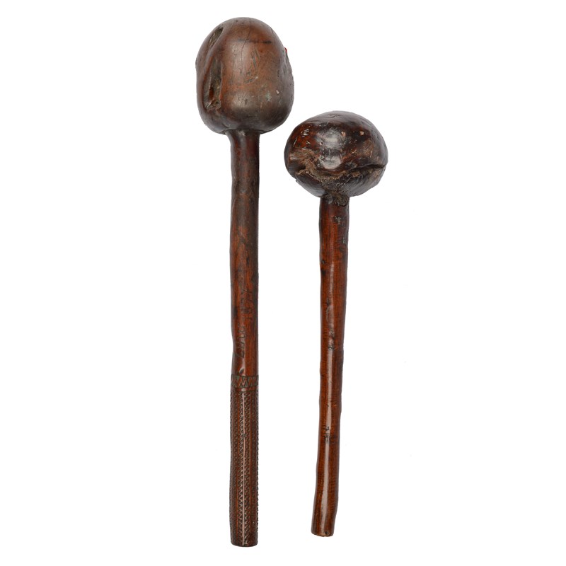 and a smaller Fiji ula, the butt pierced for attachment, 33.5cm long. (2)