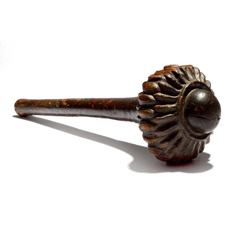 with a ribbed head and a carved zig-zag grip with a depressed butt, red painted inventory number F387,