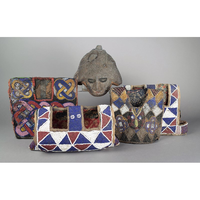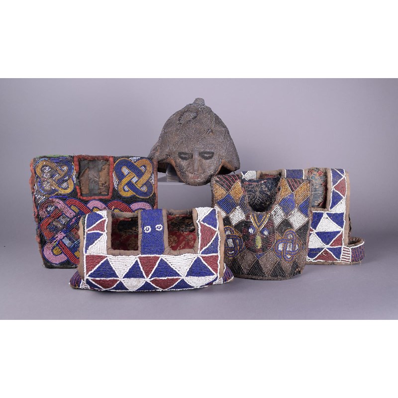 Four Yoruba Ibeji coats Nigeria beadwork and cloth